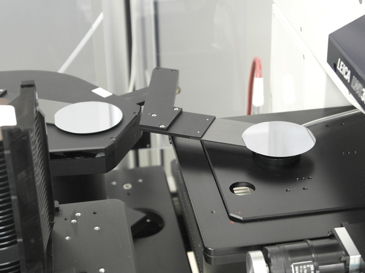 Unsere Mikroskopstation Promis-A mit Dual-Arm Roboter und Hochleistungsmikroskop kann für vielfältigste Untersuchungen genutzt werden. Auch transparente Materialien können von Handling und Aligner bearbeitet werden.