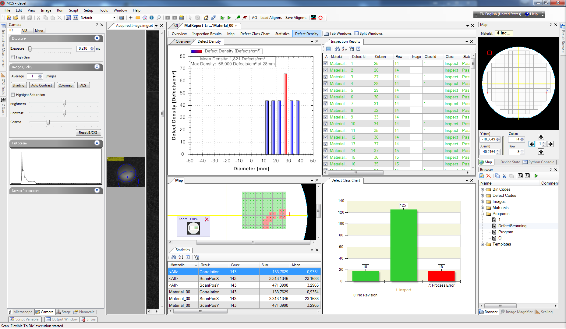 Die Software MCS ist ein effizientes und einfach bedienbares Werkzeug, entwickelt für halb- und vollautomatische Mikroskope mit digitaler Kamera und zusätzlicher Hardware wie Scanningtisch, Waferrobot, Prealigner und ID-Reader.